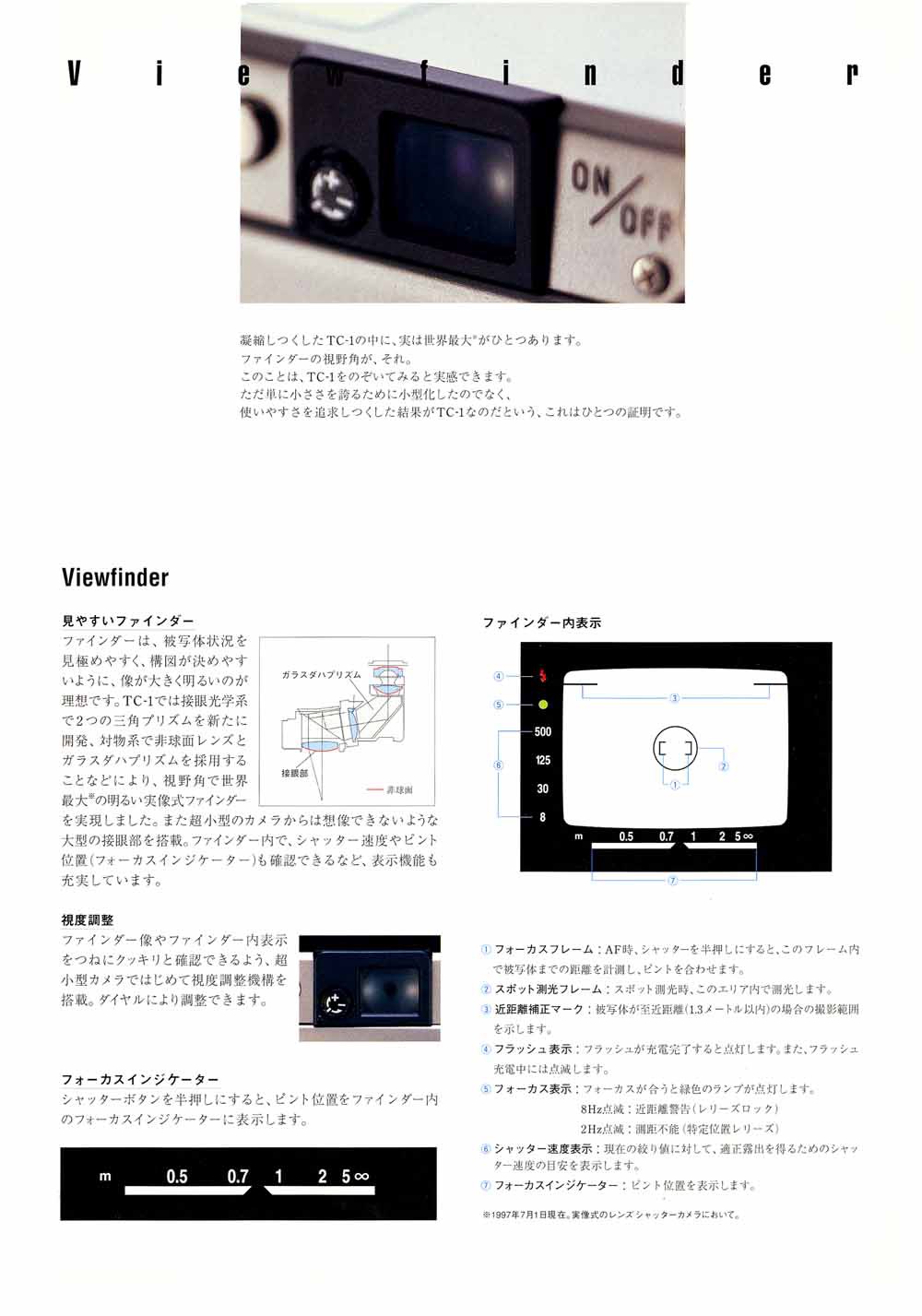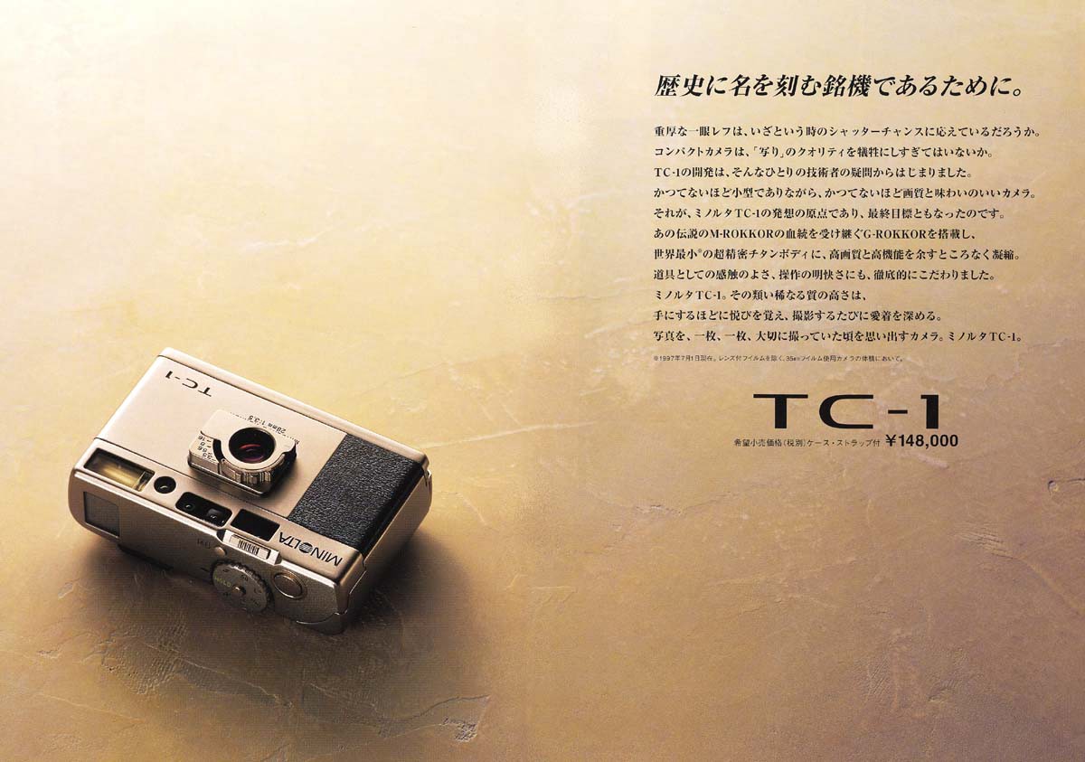 TC-1(1996) 은 이른바 일본의 버블 경제 시기에 출생한 전무후무한 고급똑딱이 기종 중(GR1, T3, TC-1) 하나로, 디자인, 기능, 만듦새의 요소가 환상적인 조화를 이루어, The Camera One 이라는 이름값을 분명히 하는 카메라이다.