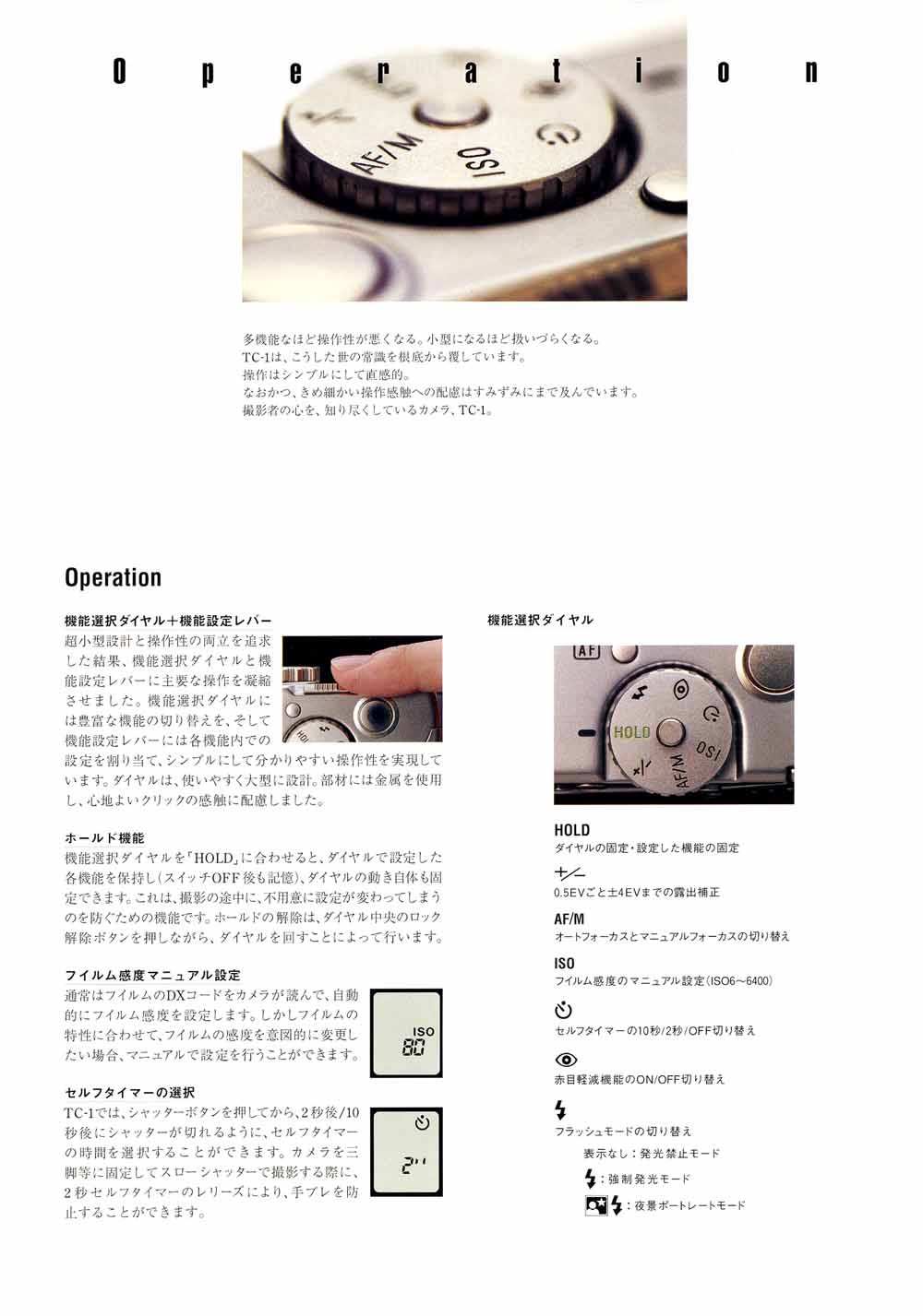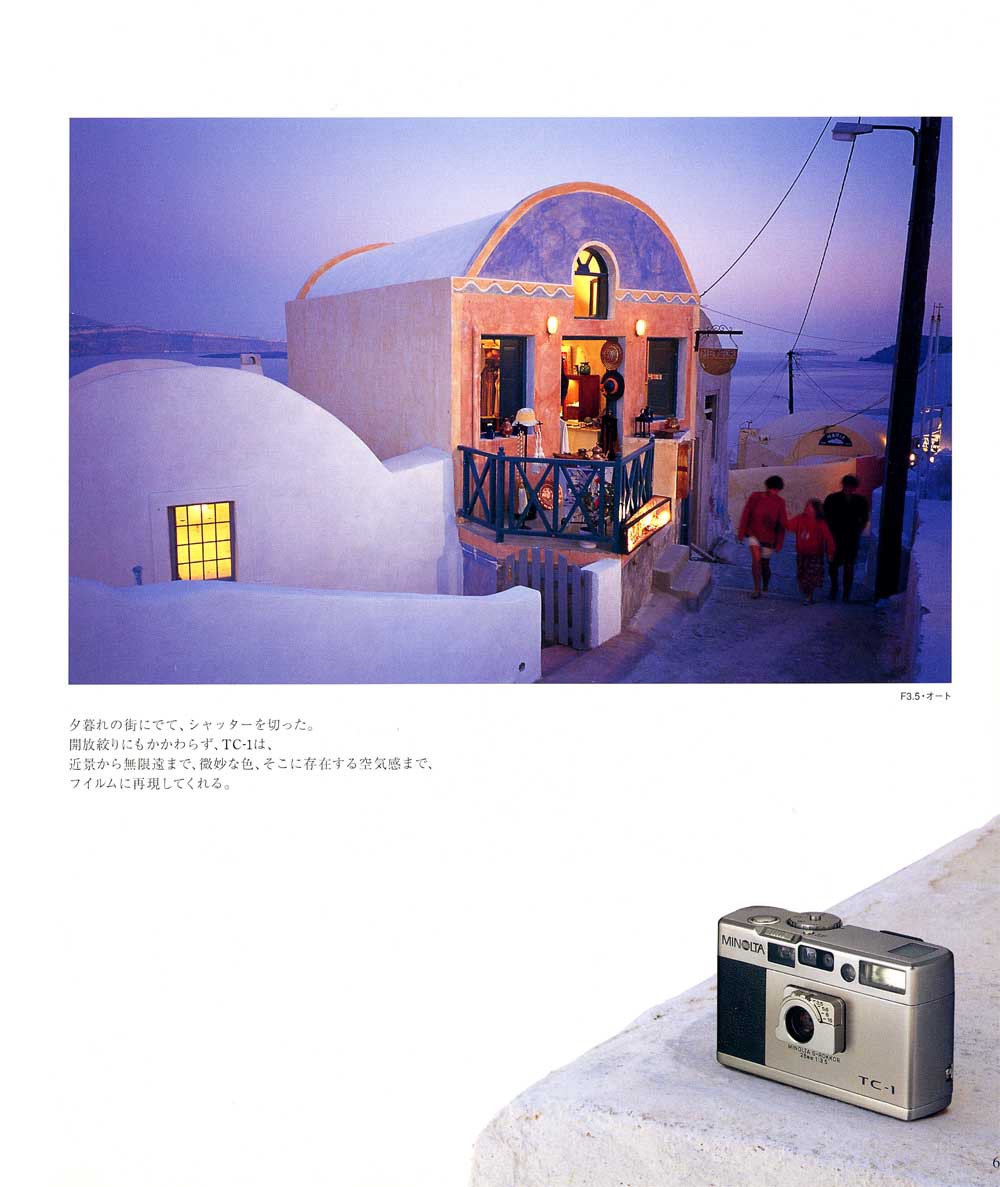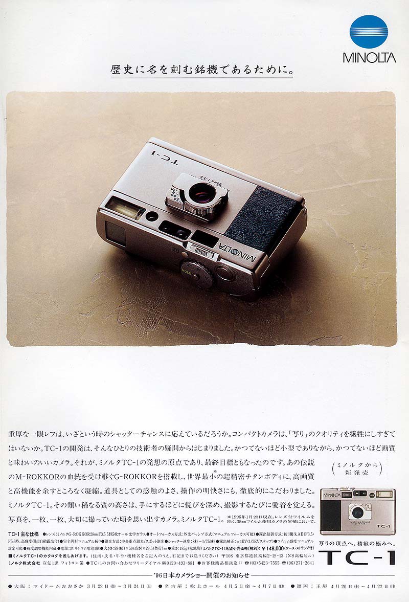 TC-1(1996) 은 이른바 일본의 버블 경제 시기에 출생한 전무후무한 고급똑딱이 기종 중(GR1, T3, TC-1) 하나로, 디자인, 기능, 만듦새의 요소가 환상적인 조화를 이루어, The Camera One 이라는 이름값을 분명히 하는 카메라이다.