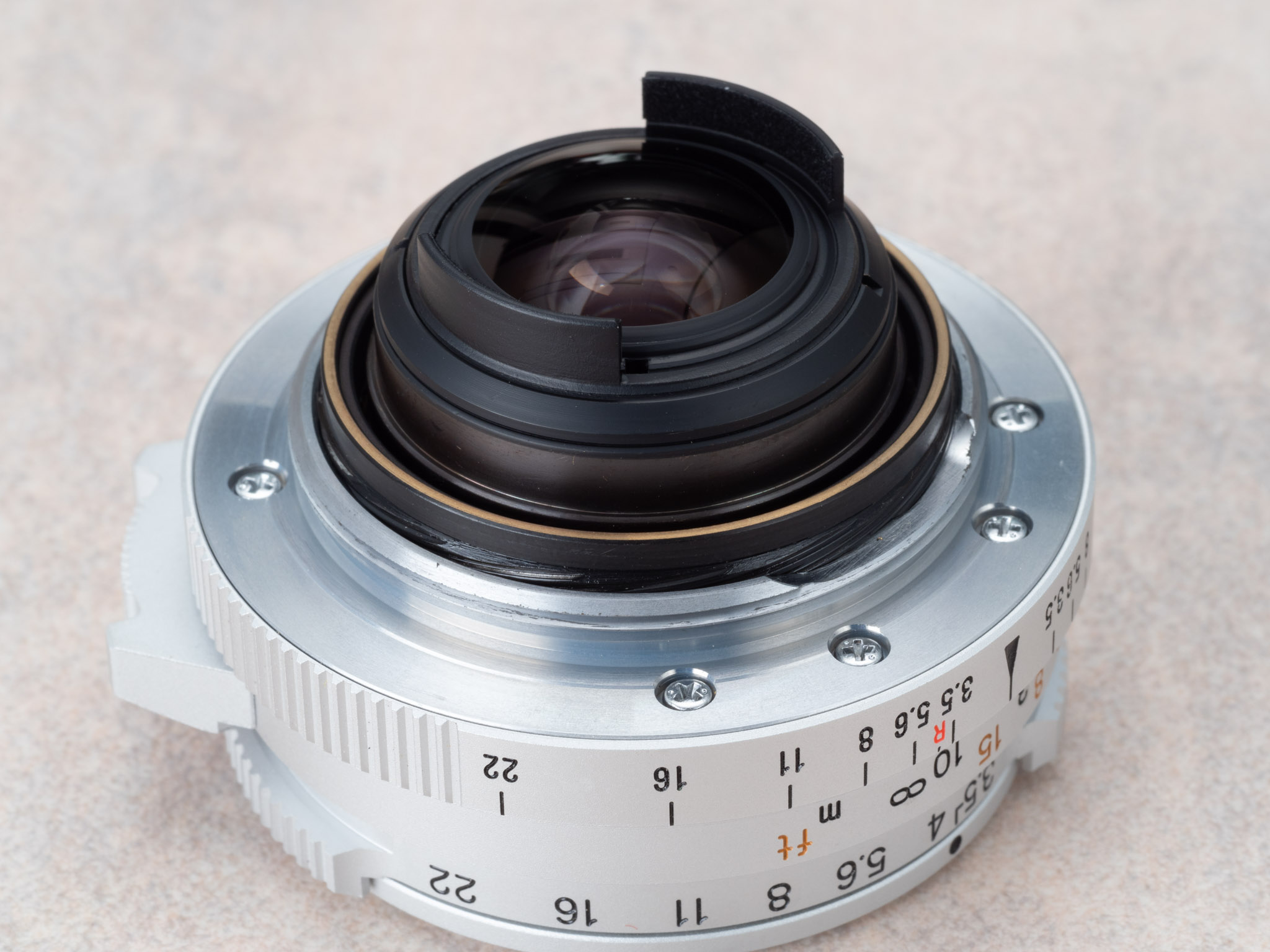 TC-1 의 경우 3.5/5.6/8/16, 4가지의 조리개 값(원형구멍)만 제공하지만, LTM 렌즈는 F22 까지 조일 수 있다는 점도 차이점이다.