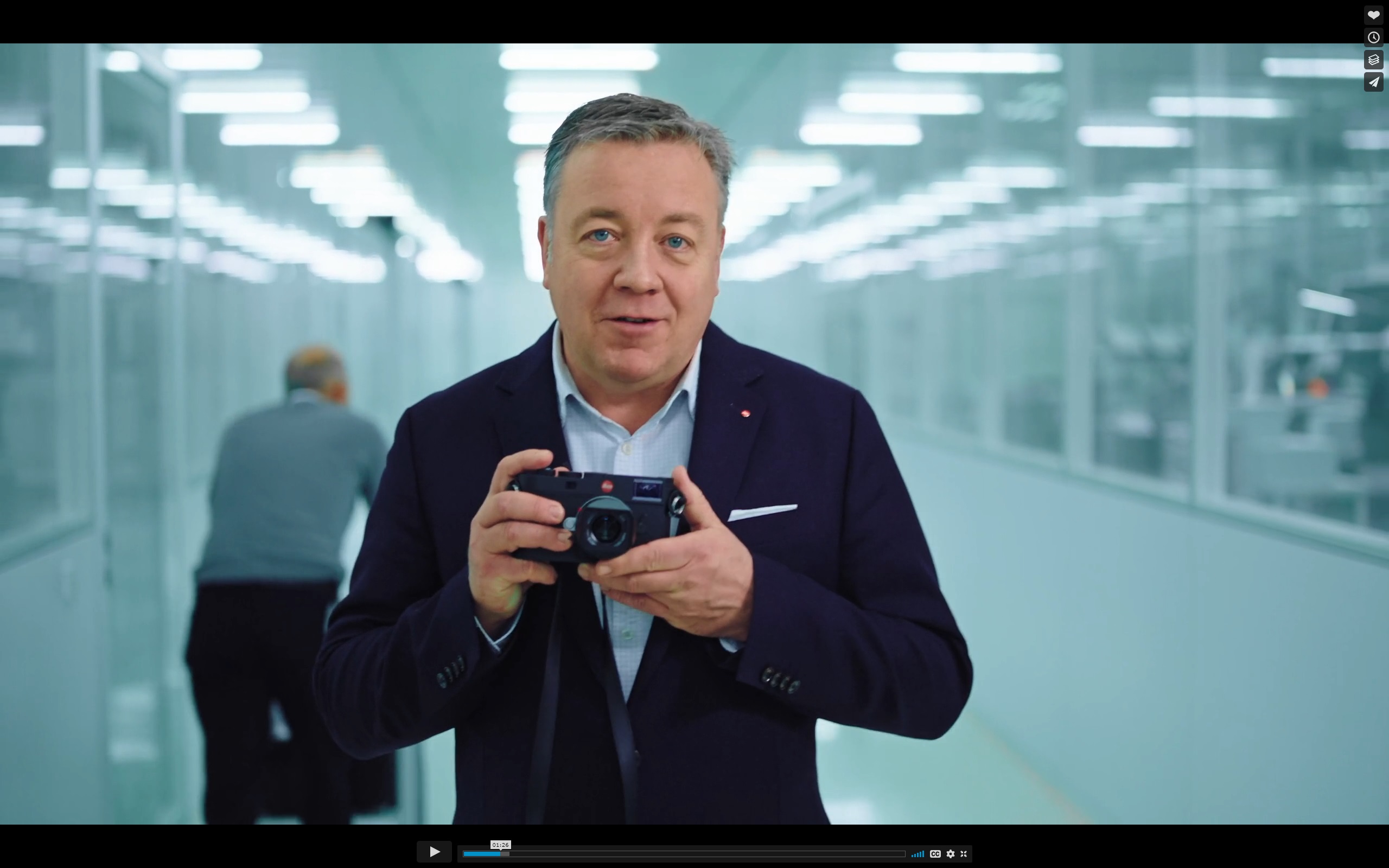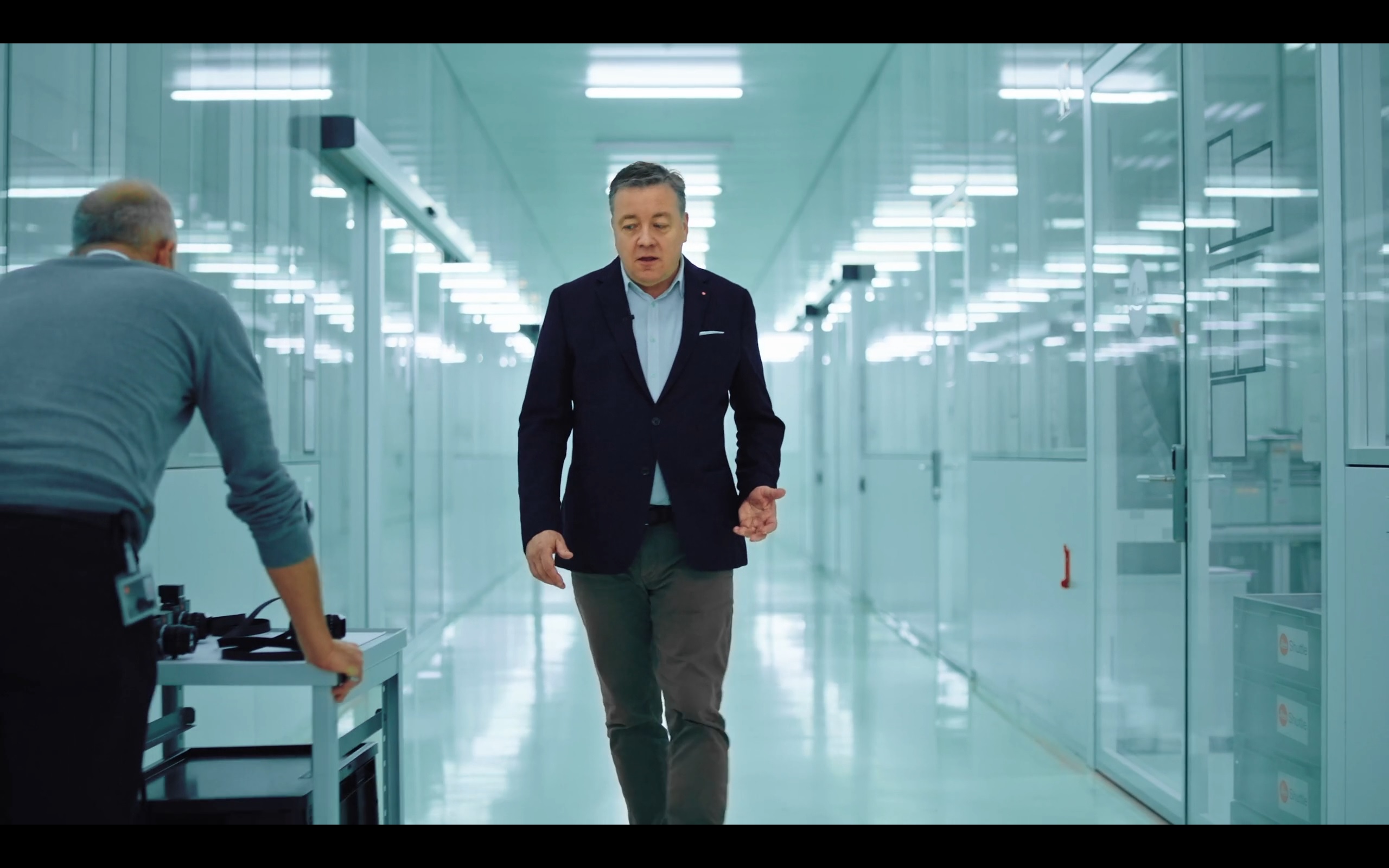 기술 및 운영 총괄 부사장인 Stefan Daniel 씨가 M11 을 집어들 때, 라이카 관계자가 직접캐리어를 끌고 등장합니다. 사람이 직접 건넨 것이죠. 로봇이나 자동 장치가 전달을 했다면, 더 깔끔해 보일 수는 있을 것이나, 느낌이 많이 달라졌을 것이라고 생각합니다. 이런 디테일에 신경을 쓴 것인지는 잘 모르겠지만, 제 눈에는 인간의 의지와 행동을 반영하는 아나로그 감성을 표현한 것으로 보였습니다.