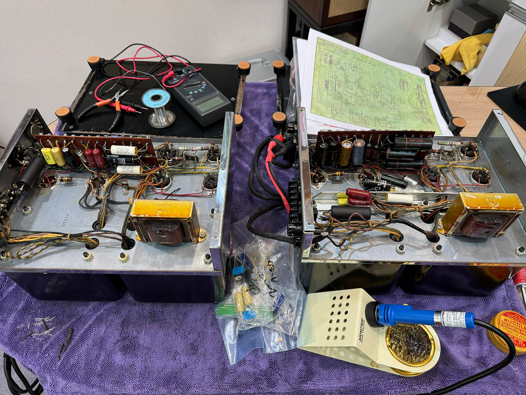 부하가 많이 걸리는 탄소저항은 다행히 pair 가 잘 맞아 있었지만, 안정성을 위해 현대의 저항으로 교체를 해 주었다. 실제로 노후된 탄소저항은 전기가 통해 열을 받으면서 수치가 달라지는 경우가 많다고 한다.