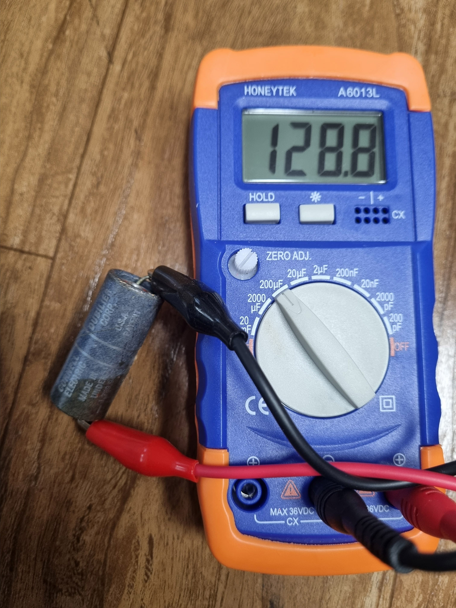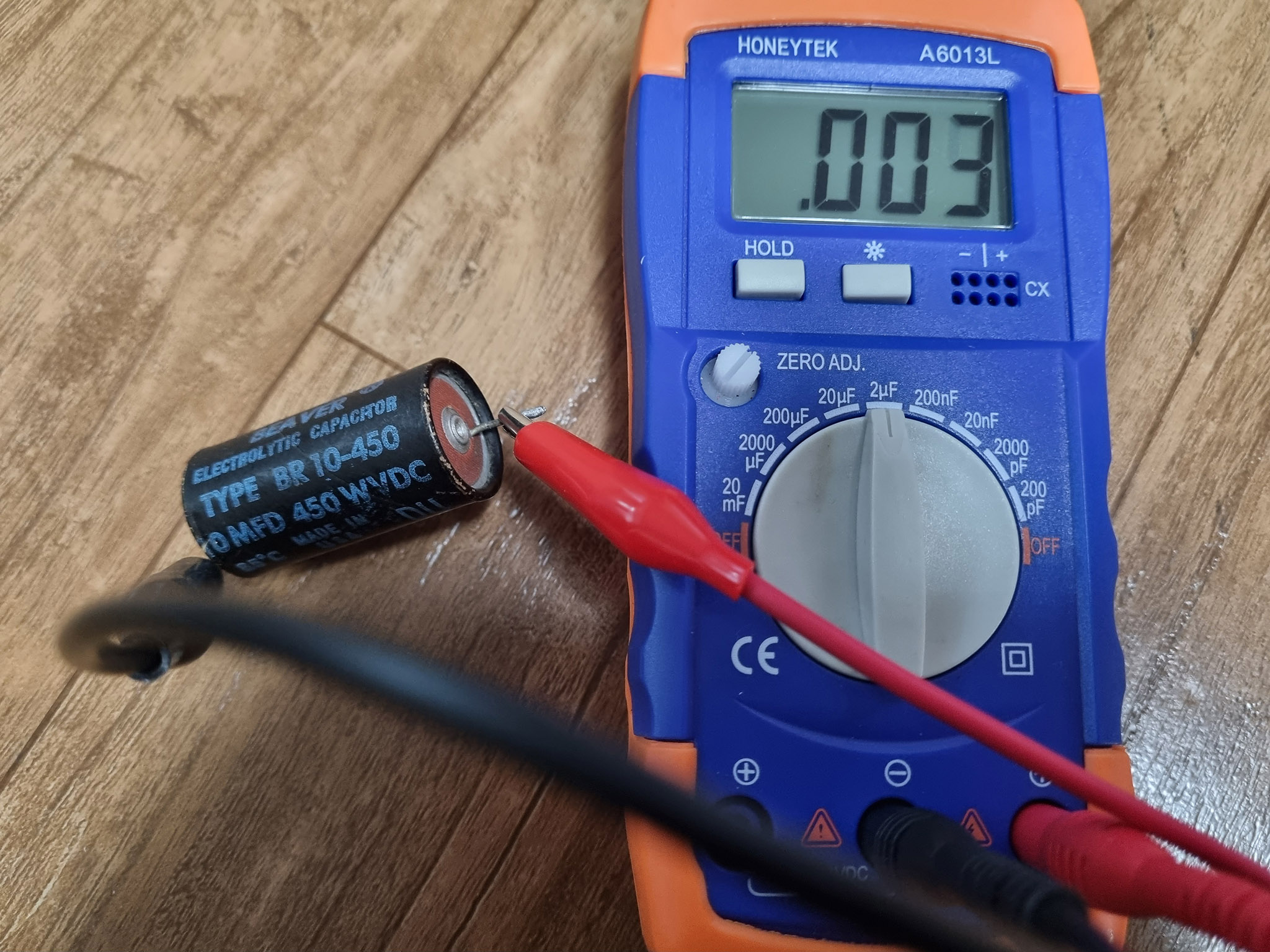 첫번째 사진의 콘덴서는 0.047마이크로패럿이라고 씌여 있지만 0.067마이크로패럿으로 측정된다.