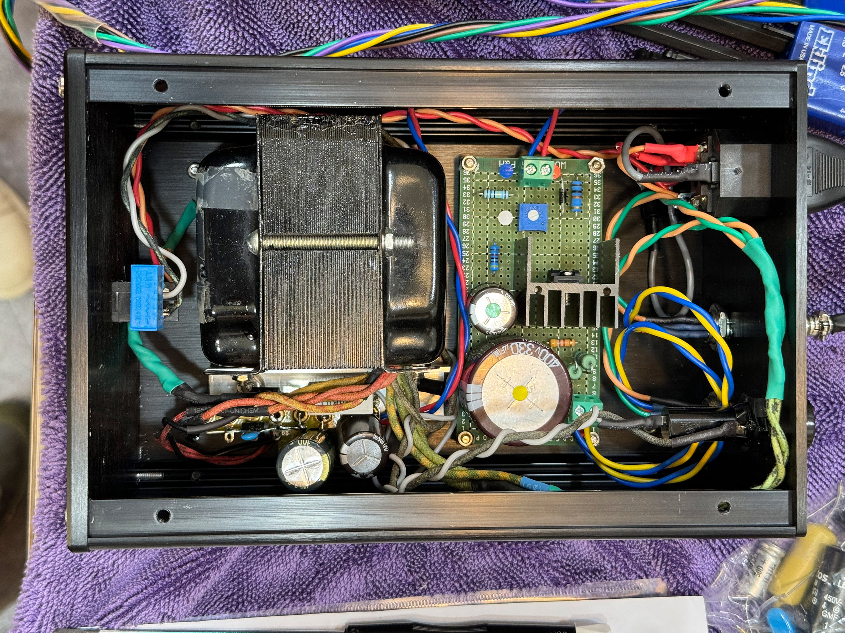 좌측의 레몬색 부품은 특주한 한국산(부품 중 유일하게) 부품인데, 한국 진공관 동호회 블라인드 비교 테스트에서 1위를 차지한 부품이라고 한다. (생긴 건 그저 마이쮸에 철사 꽂은 것 같은데 ㄷㄷㄷ)