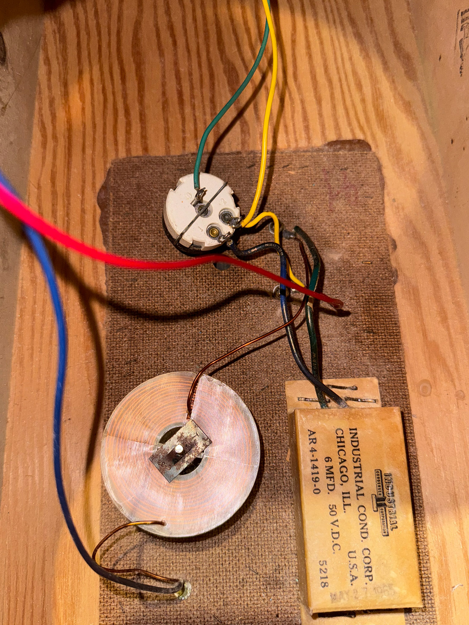 내부의 콘덴서는 완전히 변질되어 있다. AR4에서는 6mfd 용량의 콘덴서를 사용하는데