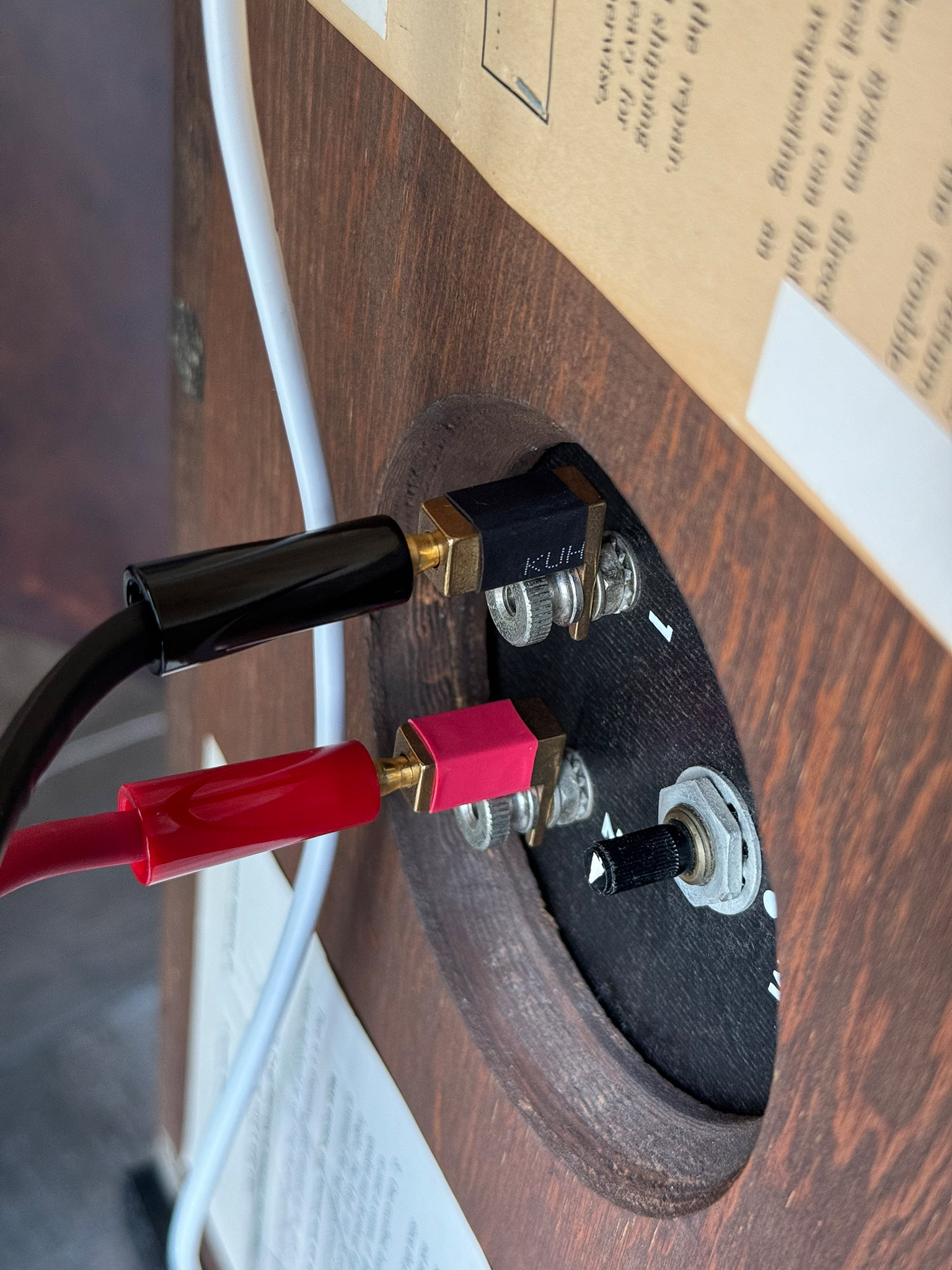 스피커 연결하는 것도 불편하기 짝이 없다. 별도의 아답터를 쓰거나 말굽 터미널 단자 스피커선을 사용해야 한다.