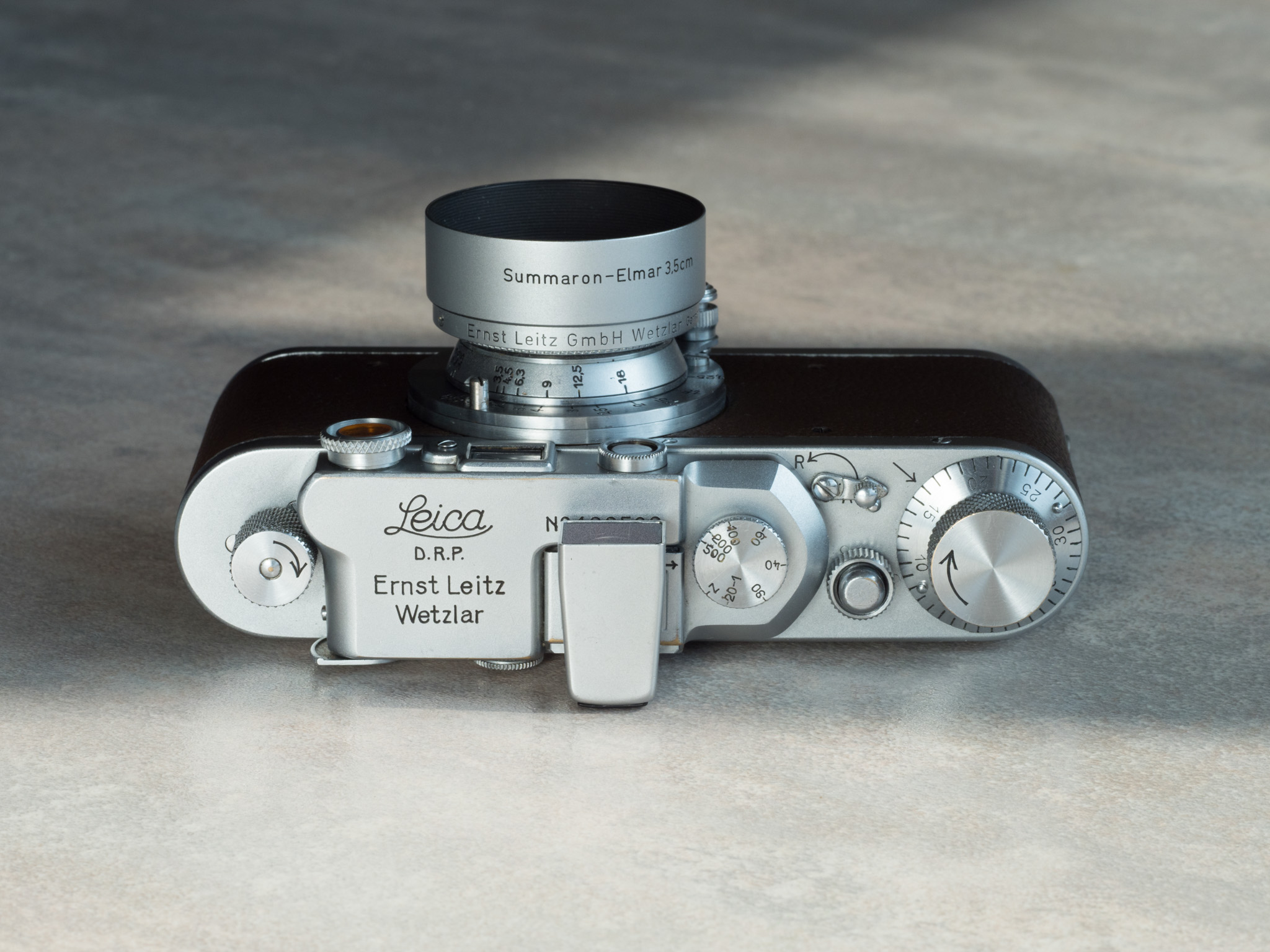 The beginning of the screw mount (LTM) journey is 'Elmar', and the end is also 'Elmar'